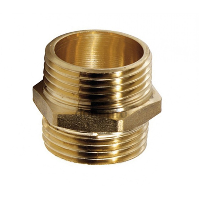 Machón de latón roscar-roscar. Pieza Macho-Macho con apertura en los dos extremos.